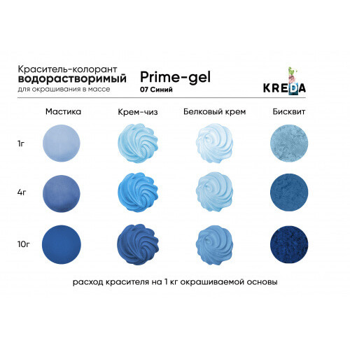 Краситель пищевой гелевый "Kreda Bio Prime-gel", Синий (10 гр)