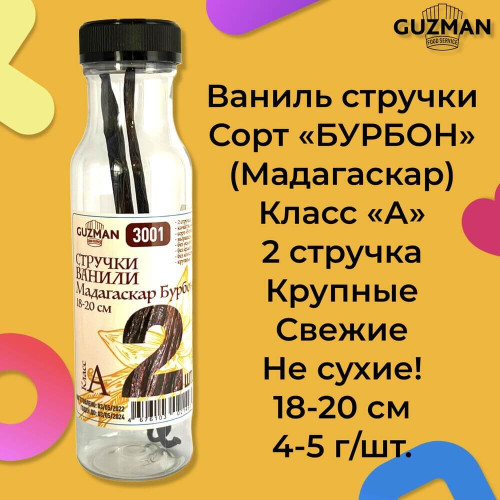 Ваниль стручки (2шт.) БУРБОН крупные, 18-20 см, РАЗМЕР "А", Guzman