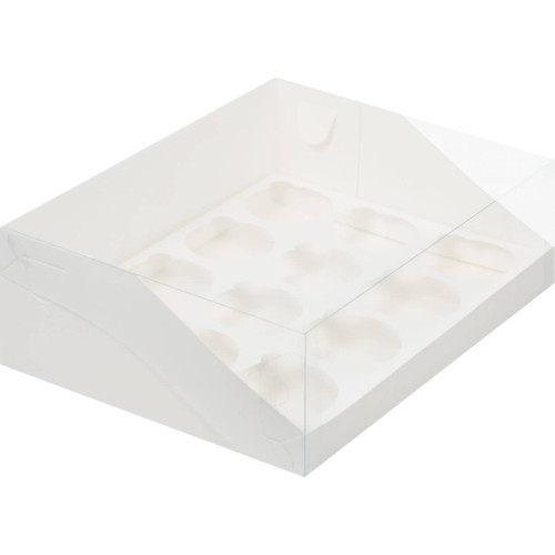 Коробка под капкейки с пластиковой крышкой 31*23,5*10 см (12) (белая, гофрокартон)