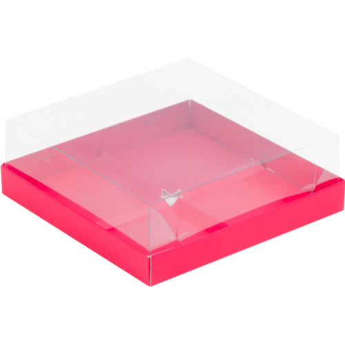 Коробка под муссовые пирожные с пластиковой крышкой 19*19*8 см (4) (красная матовая)