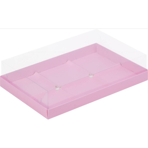 Коробка под муссовые пирожные с пластиковой крышкой 26*17*6 см (6) (розовая матовая)