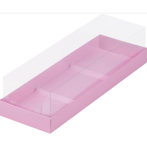 Коробка под муссовые пирожные с пластиковой крышкой 26*8,5*6 см (3) (розовая матовая)