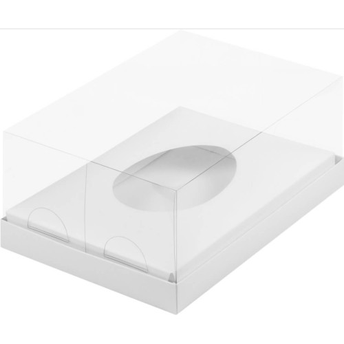 Коробка под половинку шоколадного яйца с пластиковой крышкой 23,5*16*10 см (белая)
