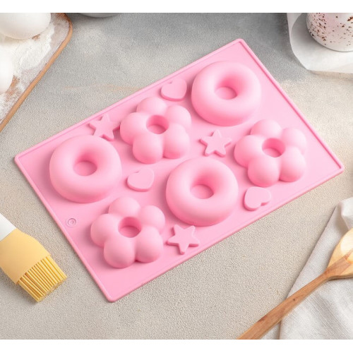 Форма для выпечки "Сладости. Пончик и ромашка", 6 ячейки