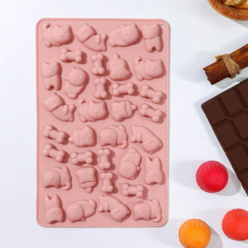 Размер ячейки: косточка 1,9*1,1*1 см, киса 2,6*2,1*0,8 см, собачка 2,5*1,5*0,8 см.