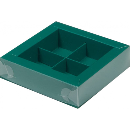 Коробка для конфет с пластиковой крышкой 12*12*3 см (4) (зелёная матовая)