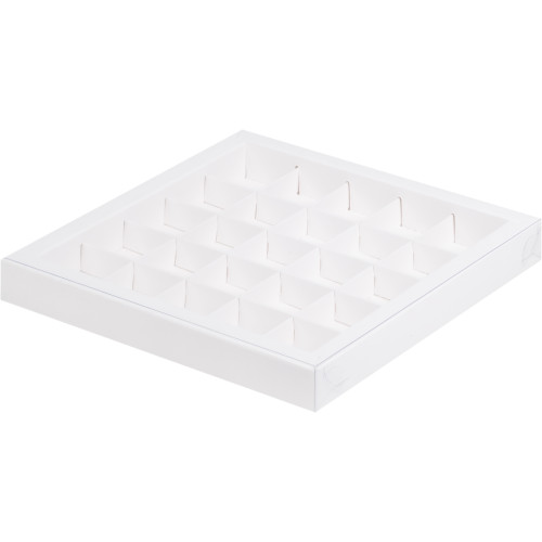 Коробка для конфет с пластиковой крышкой 24,5*24,5*3 см (25) (белая)