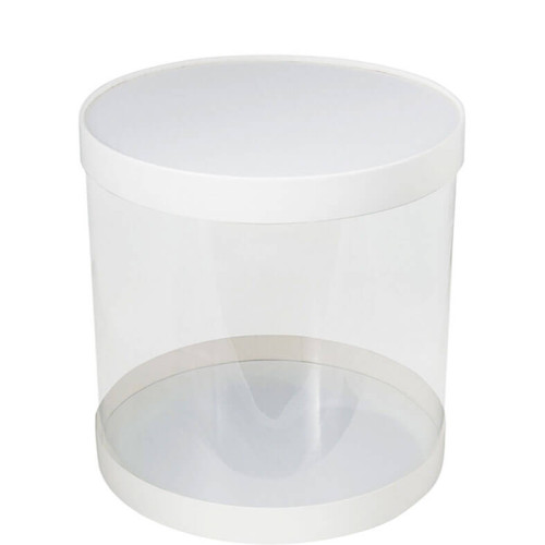 Коробка для торта прозрачная ТУБУС диам. 12 см, выс. 12 см (белая)