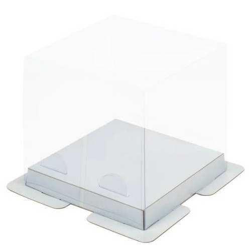 Коробка под торт Премиум с пьедесталом прозрачная 150*150*140 (белый)