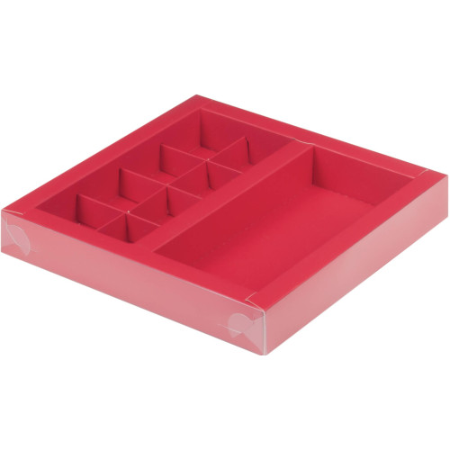Коробка с пластиковой крышкой для конфет 20*20*3 см (8) + для шоколадной плитки 16*8 см (красная матовая)
