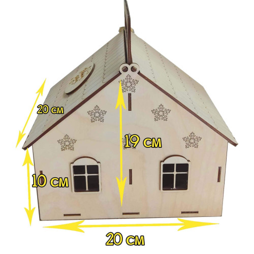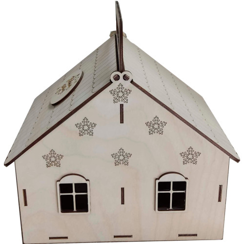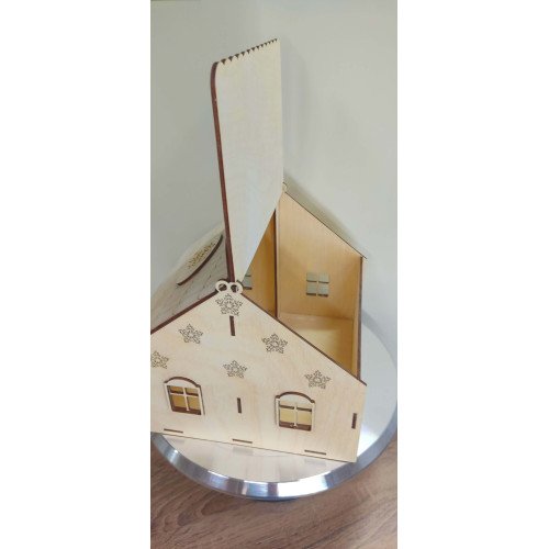 Упаковка для новогоднего подарка, в виде домика с окнами.