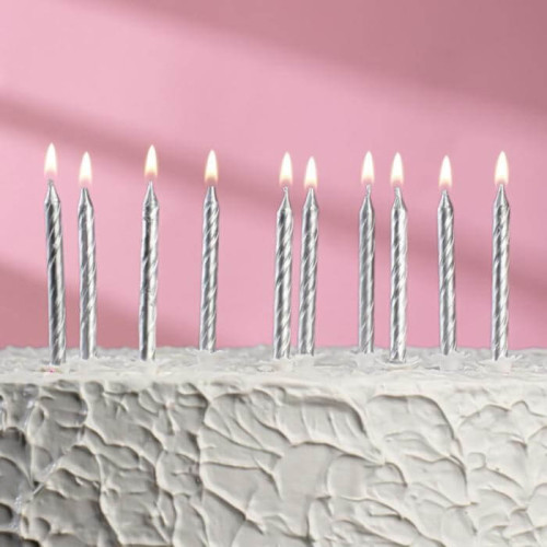 Набор свечей для торта "С днём рождения", серебряные, 10 шт
