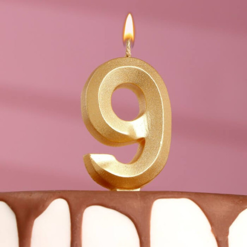 Свеча в торт "Грань", цифра "9", золотой металлик
